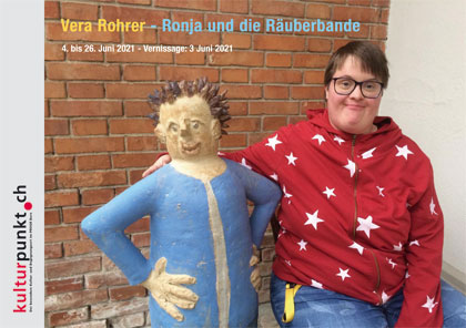 Nur 3 Tage später, am 3. Juni (ab 18 Uhr), findet im kulturpunkt die Vernissage zu einer ganz anderen Ausstellung statt: Vera Rohrer zeigt unter dem Titel «Ronja und die Räuberbande» ihre neusten Tonfiguren, Bilder und Zeichnungen.