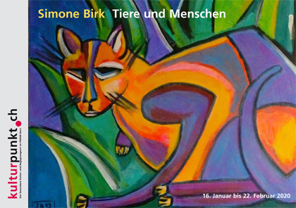 Die Vernissage von Simone Birk - Tiere und Menschen am 16. Januar war ein Erfolg. Besucherinnen und Besucher zeigen sich von ihren farbig-kraftvollen Tier- und Menschenportäts beeindruckt. Noch bis zum 22. Februar haben Sie Gelegenheit, Simone Birks Bilder zu sehen (Öffnungszeiten: Do: 14-18.00 Uhr, Fr: 14-17.30 Uhr, Sa: 14-16.00 Uhr).
