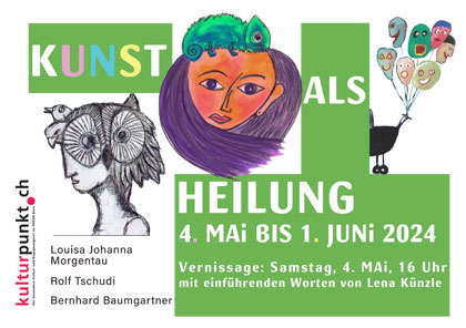Schon diese Woche finden im kulturpunkt zwei interessante Veranstaltungen statt. Dies zum Abschluss der Gastausstellung «Kunst als Heilung» des Künstlerpaars Louisa Johanna Morgentau und Rolf Tschudi: