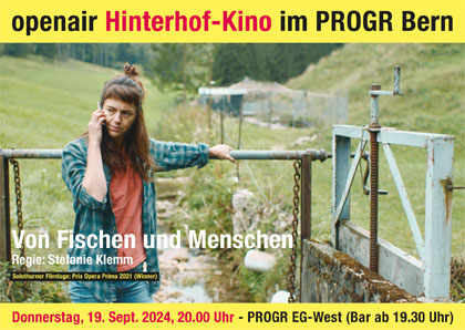 Am Donnerstag, 19. September, 20.00 Uhr läuft im openair Hinterhof-Kino im PROGR-Westflügel die vierte und für diese Saison voraussichtlich letzte Vorstellung. Gezeigt wird Stefanie Klemms prämierter Spielfilm-Erstling «Von Fischen und Menschen» (CH 2020, 87 Min.). «Ein kluger, bildstarker Film, der in Bann zieht und nachhallt» (Filmcoopi). Im anschliessenden Gespräch stehen Stefanie Klemm und die Hauptdarstellerin Sarah Spale Red und Antwort (Moderation Felix Tissi). Bei schlechtem Wetter findet die Veranstaltung drinnen im kulturpunkt statt. Die mobile PROGR-Bar offeriert Drinks. Eintritt: Kollekte.