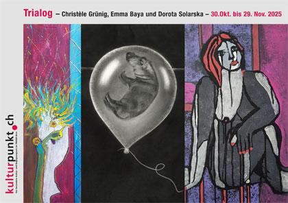 Die Ausstellung «Trialog – Christèle Grünig, Emma Baya und Dorota Solarska» dauert bis zum 29. November, geöffnet jeweils Do. und Fr. von 14 bis 18 Uhr, Sa. von 14 bis 16 Uhr.